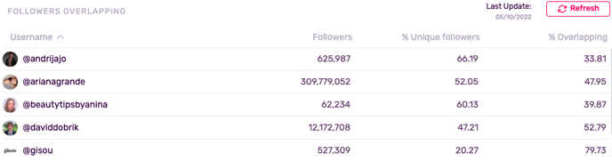 Influencity also automatically calculates the percentage of unique followers an influencer has compared to other creators in your list. This makes it easy to assess how many people you can likely reach through your campaign if you work with a certain combination of influencers.