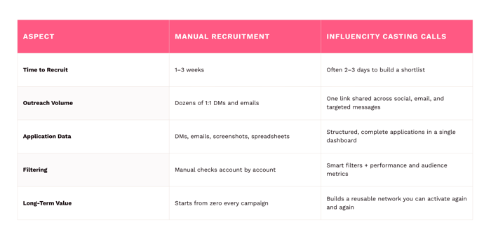 Casting give everyone involved in your influencer campaigns a cleaner system to follow and a setup that’s much easier to scale as you grow.