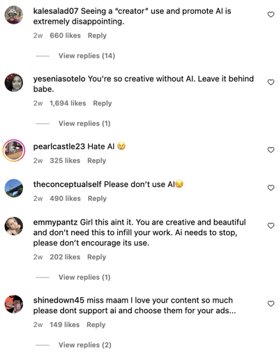 I recently saw one of my favorite content creators using an AI app to create different Halloween looks. But her followers weren’t happy with her promoting AI, with many of them expressing how she was creative without AI. These comments indicate that many social media audiences equate the use of AI-generated content with a lack of creativity.