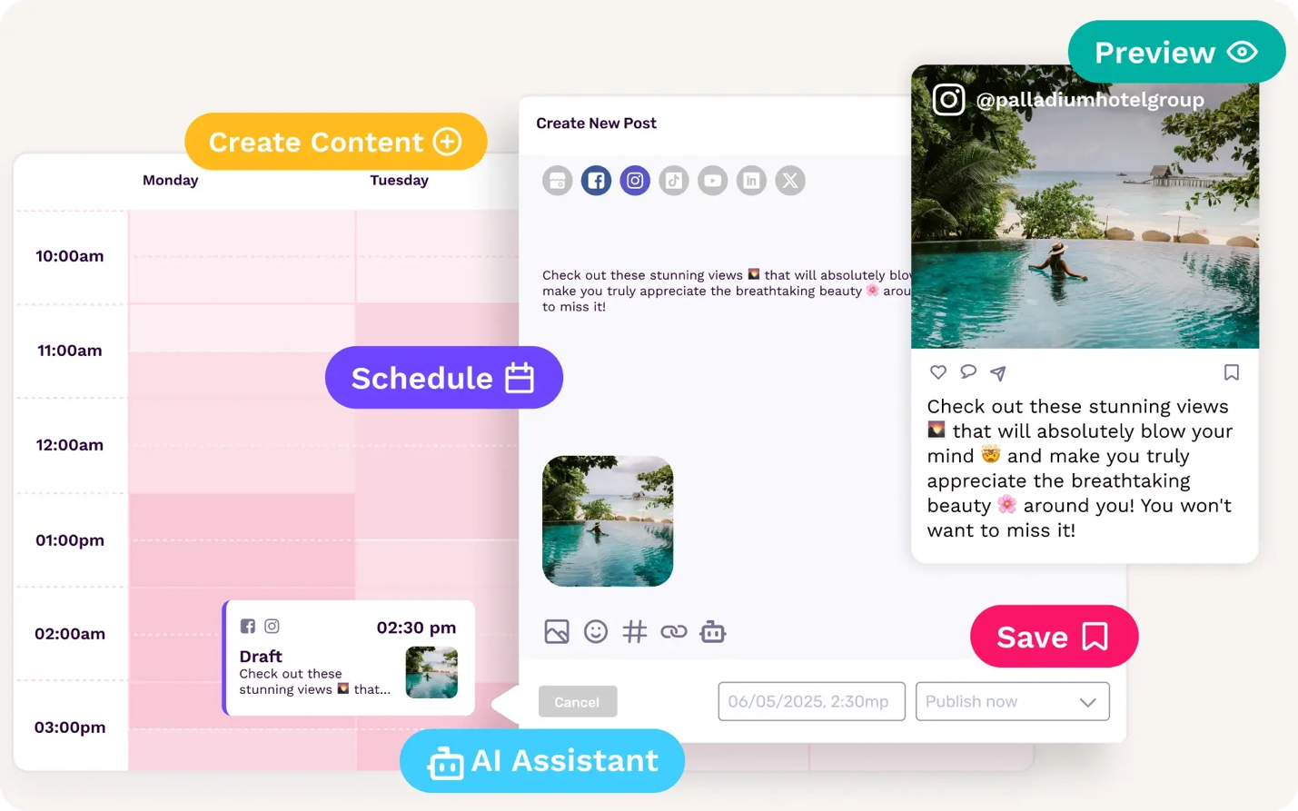 Influencity’s social media planner comes with an AI assistant that lets you automatically generate copy ideas that you can provide to creators. Have them develop or fine-tune those ideas to personalize them for their audience.