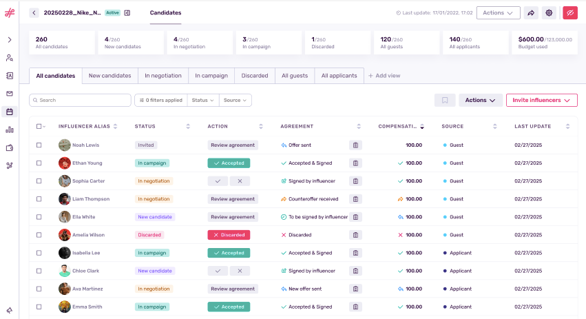 - Influencity for discovery, scoring, shortlists, usage rights tracking, and reporting.