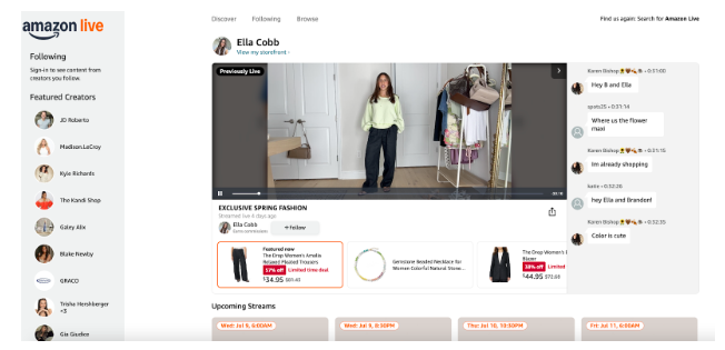 Amazon further backs up their influencer strategies with Amazon Live, where customers can watch a creator’s livestream and simultaneously shop the featured products. Influencers will share product demos, walk-throughs, reviews, and more via live broadcast and engage their audience in real time.