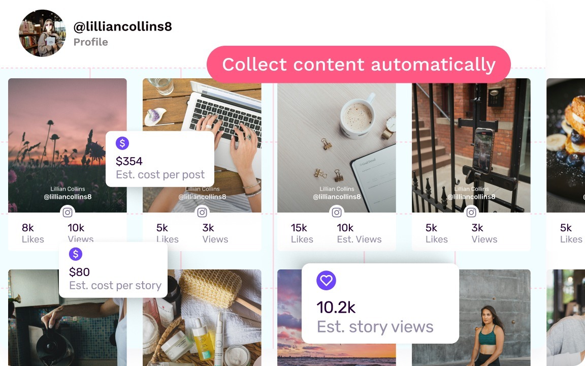 And the best part is that you don’t need to go back and forth with influencers to get them to opt in. The platform automatically tracks every piece of content from an influencer once you’ve added them to your list.