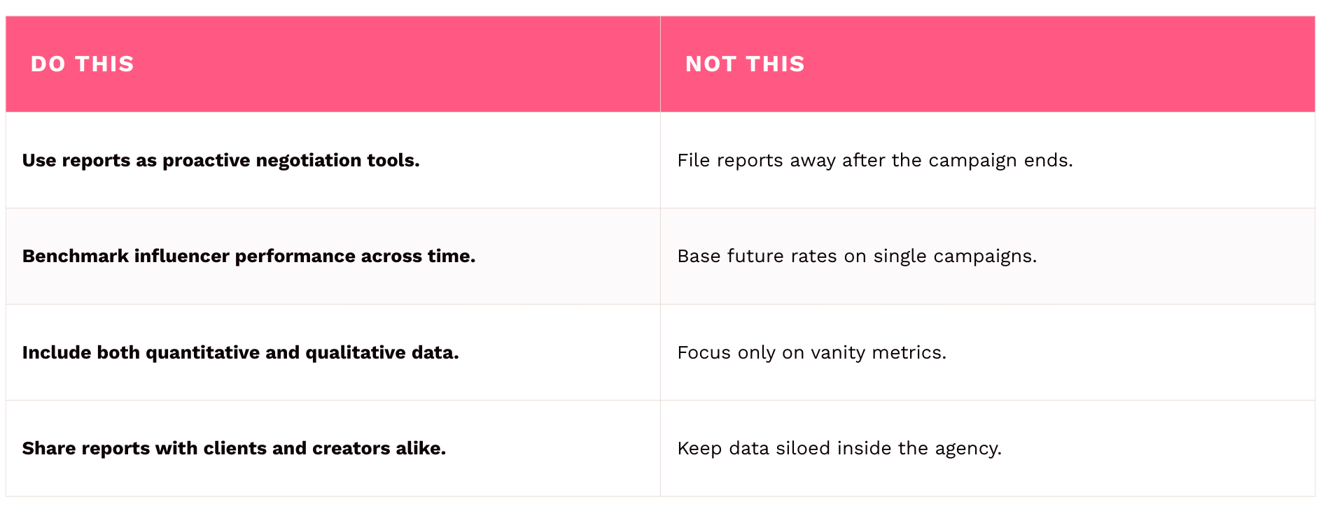Once you’re ready to start leveraging influencer reporting for your negotiations, make the most of these tips and best practices to get started.