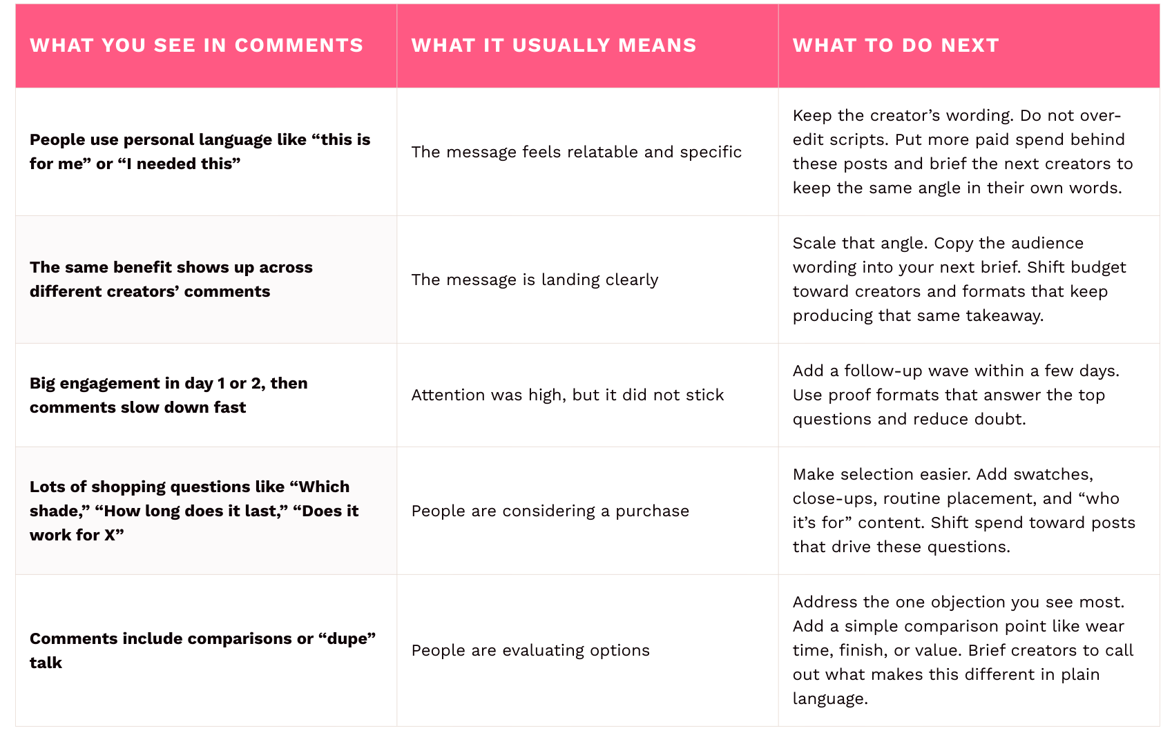 - Add findings to the next creator brief