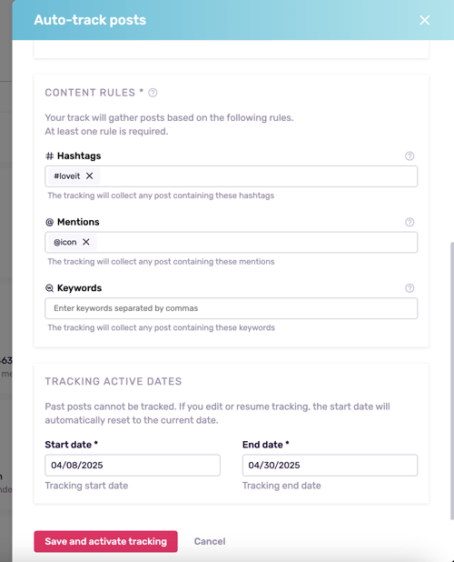 Influencity’s tracking feature lets you collect posts from specific influencer profiles. You can set the content rules to automatically track posts that use certain hashtags, brand mentions, or keywords. This makes it easy to track influencer UGC by campaign and format.