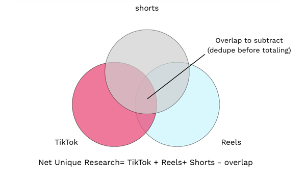 When you want a cross-platform total, you cannot add platform reach blindly. People overlap across TikTok, Reels, Shorts, and across organic and paid. You need a deduped total.