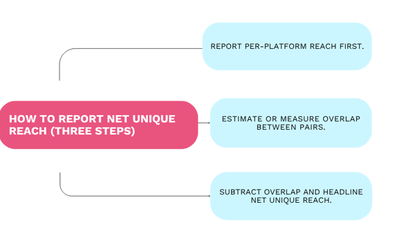 Pull these numbers first. Then dedupe to report Net Unique Reach.