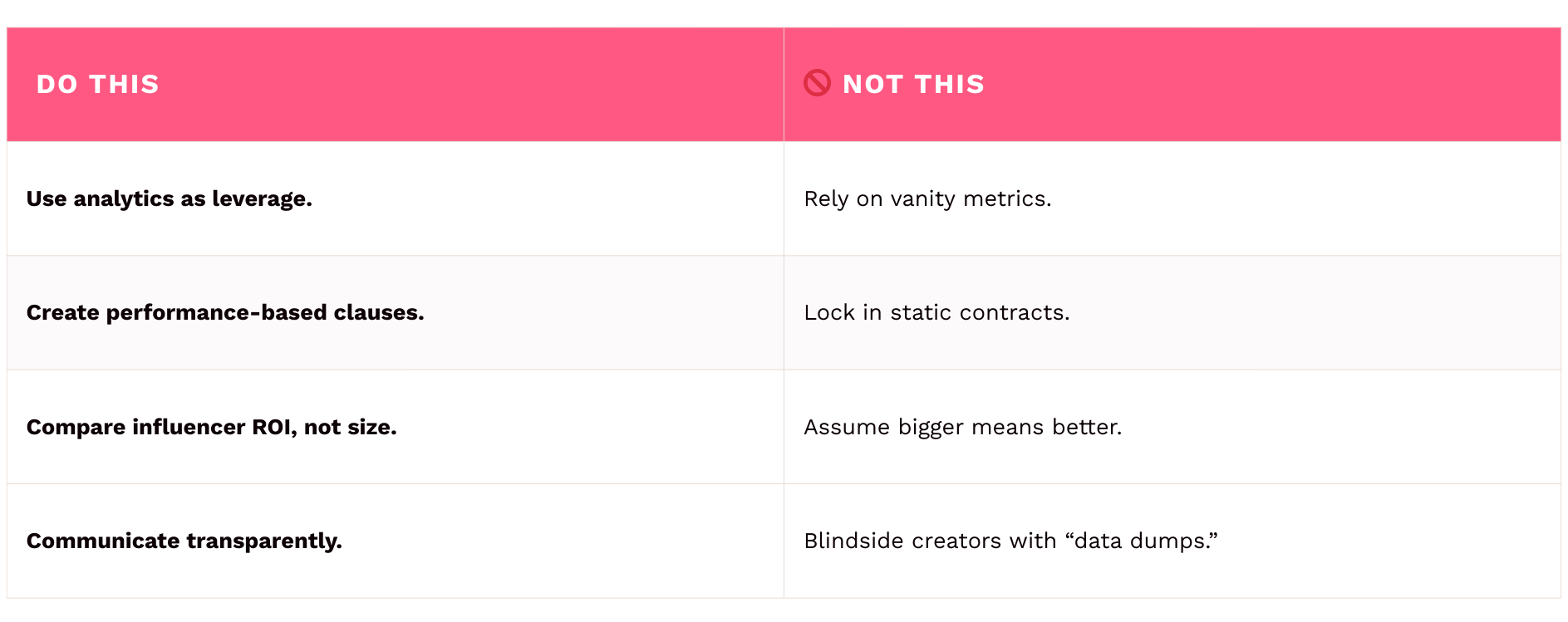 You know what to track and which tools to use. Now let’s check out these pro tips to guide your influencer negotiations.