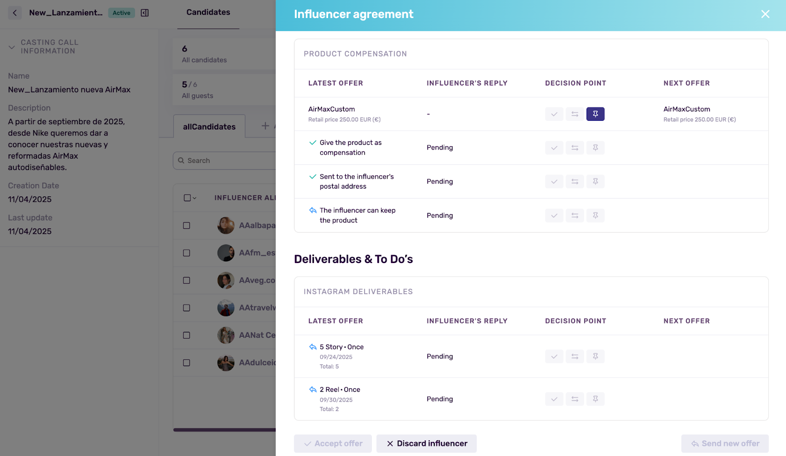 An influencer CRM is where you store and use the information that makes repeat collaborations easier: relationship history, past performance, collaboration notes, contracts, timelines, and what to do next.
