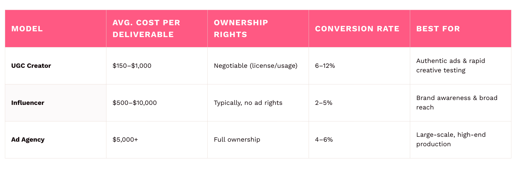 Comparative Study: UGC vs. Influencer vs. Ad Agency Pricing