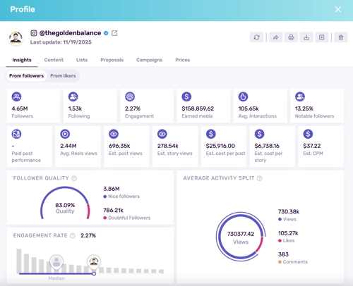 In short, never trust a profile just because it looks good. Sometimes, the most visually appealing accounts surprise you with their limited influence. Vet every single account, both before working with them and after they post, to evaluate their impact and assess their strengths or weaknesses.